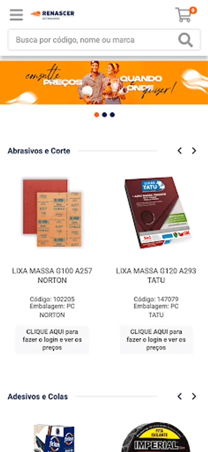 Browse through Renascer Distribuidora's construction materials catalog and place your orders with total convenience.