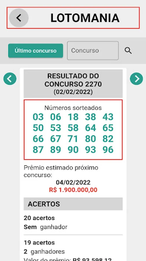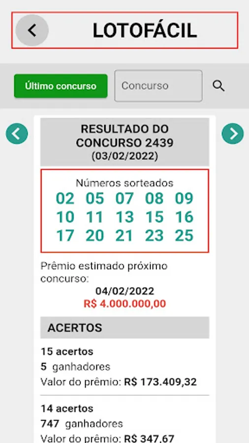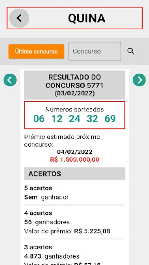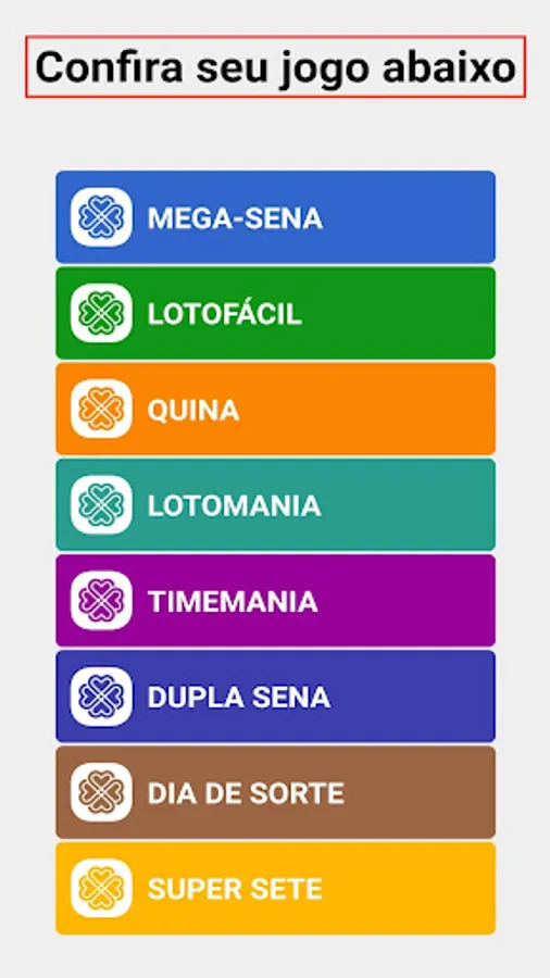 Have all the results in hand, through this application: Result Now. Mega-sena, Lotofácil, Quina, Lotomania, Timemania, Dupla sena, Lucky Day, Super Seven and + Millionaire.