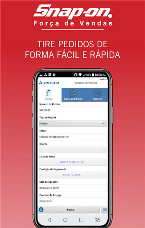 The order is issued by the seller's tablet or smartphone, following all company business policies. It is then synchronized to the cloud of the FV Snapon from there it can be queried by the Manager Panel.