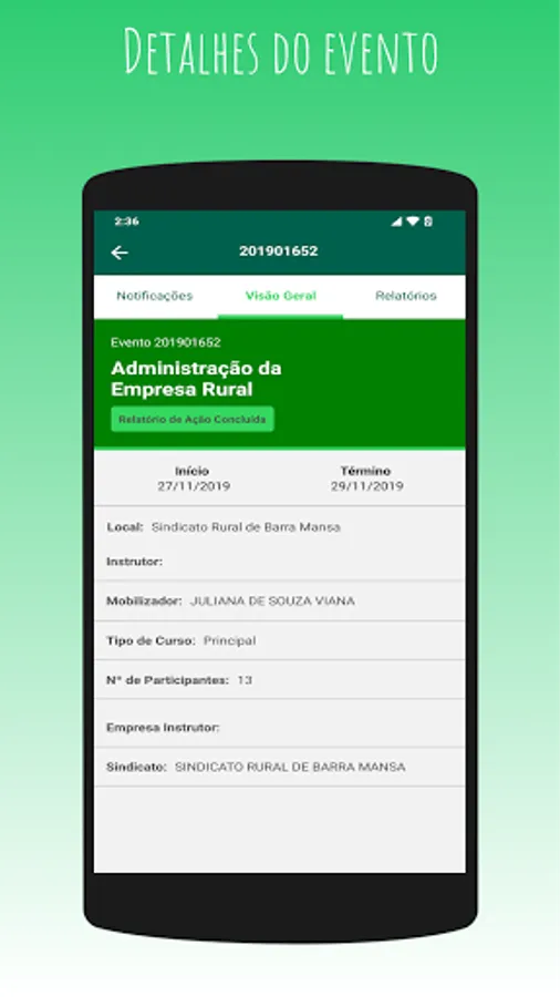 Access the Senar Nas Nuvens Supervisor Application and have access to the Event Supervision Reports even without an internet connection.
