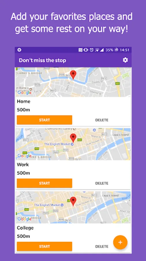 Don't miss the stop on the other hand uses your real-time GPS location. It is therefore rightly named Location Alarm or GPS Alarm. This means you can rest assured you will be woken only when you are near your destination.