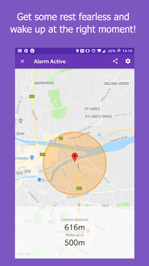 Factors such as traffic, the route you choose etc can affect the total duration of your journey. This is why conventional time based alarms are not useful while travelling.