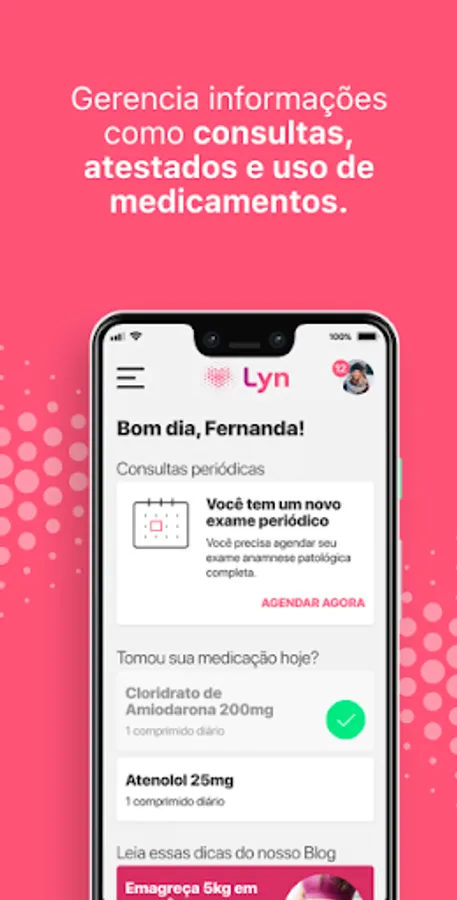LYN is here to change the way you relate to your health. More than monitoring simple health data, it is a center of specialized information. Its artificial intelligence analyzes relevant data to monitor risks, define personalized care, in addition to informing, teaching and raising awareness about habits that will bring more health and quality of life.