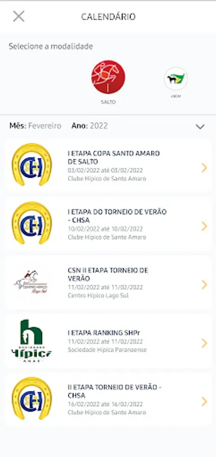 Access to calendars, registration links, entry orders and results of competitions of various equestrian modalities;