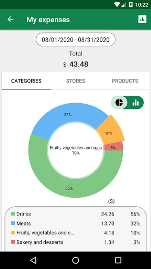 SoftList is the only shopping list app that has reports and charts to analyze your expenses. You can analyze various information, such as which product or category had more expenses.