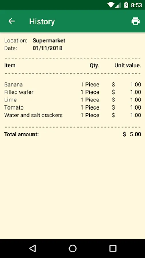 By saving the history of your purchases, you can perform an analysis of your expenses, and if you have purchased the same product in different stores, perform price comparisons.