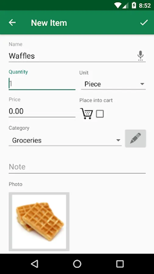 You can create lists by just adding the names of the products or complete lists by adding price, unit of measure, category, observation and photo.