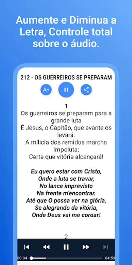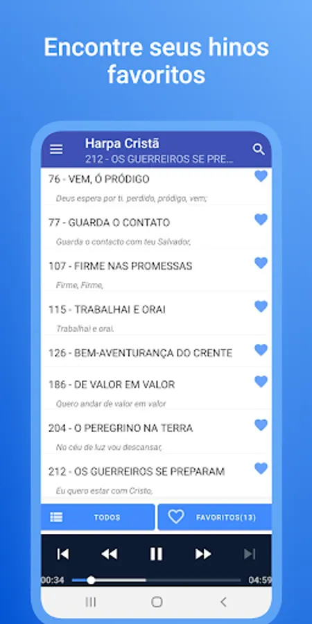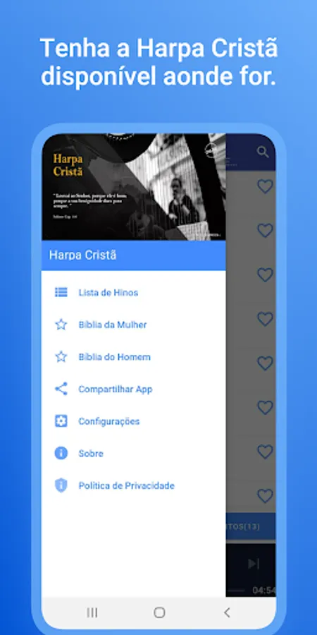Take advantage of the opportunity to have a Complete Christian Harp 🎶 on your cell phone 📱. With more than 640 hymns, you will be able to praise God 🙏 anytime and anywhere. Remember your favorite Church hymns ⛪ and share with your friends 😎.