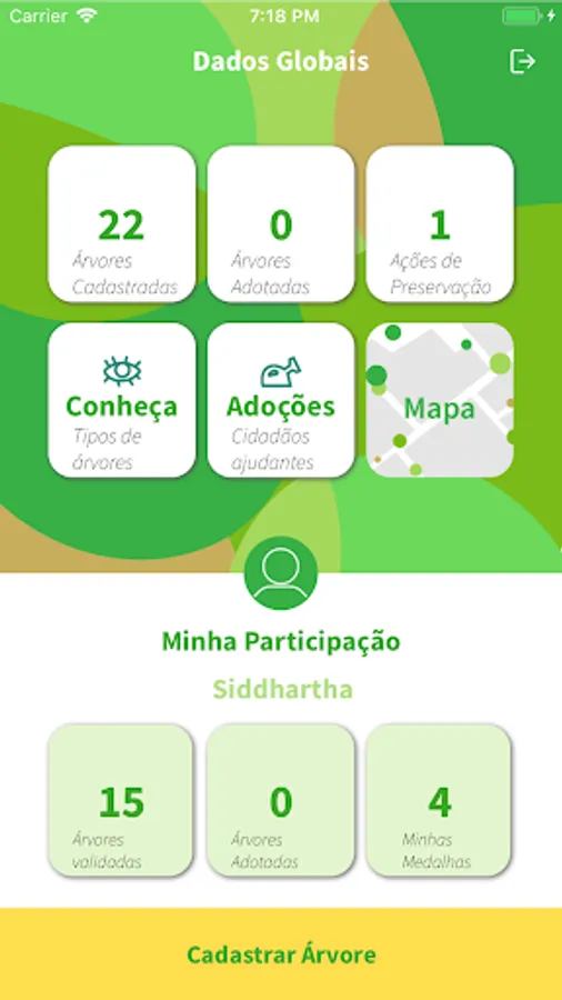 Application with information of the existing trees in the City of Recife. Allows the user to register the trees of the City of Recife. In addition to allowing it to indicate that it is the caretaker of a tree. In addition, the user receives medals related to their use in the application