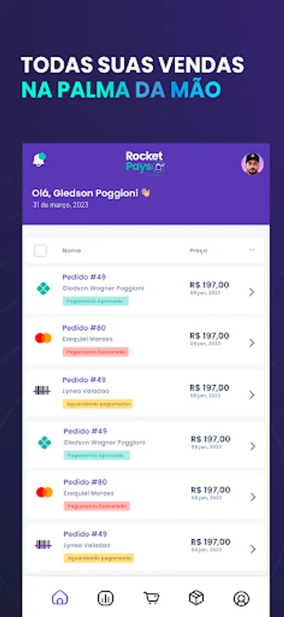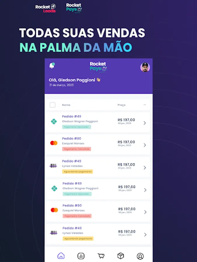 Turn on app notifications and be informed in real time of each new sale made, including the value of transactions. Let's leverage your business together with the RocketPays app!
