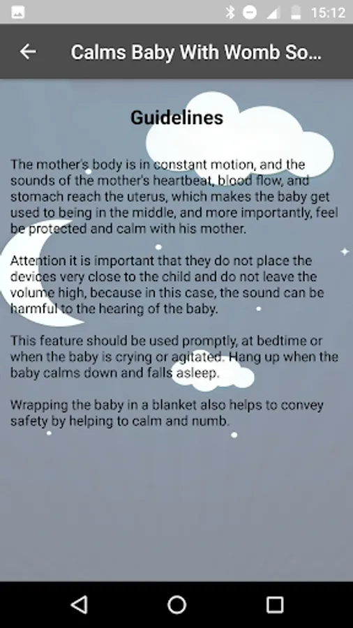 Application able to soothe your baby emitting the sound of the uterus, does not need internet to work, simple and easy to use. It allows you to use other applications on your cell phone without interrupting the womb sound.