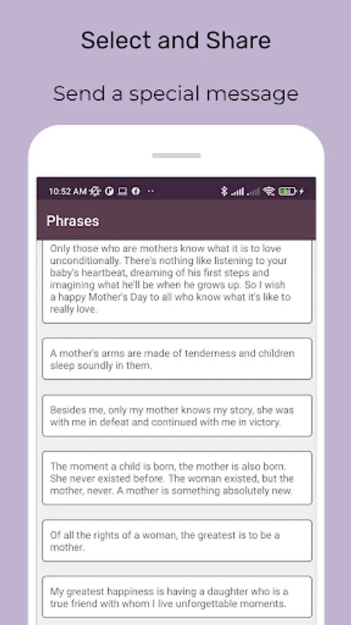Phrases for Mother is the right application to get inspired and send a tribute to mothers.