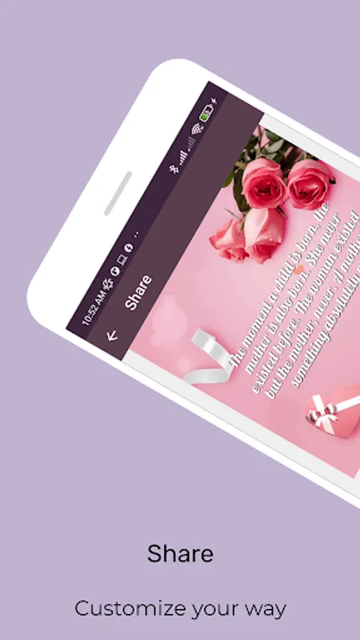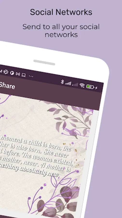 Send directly via Whatsapp, Instagra, SMS, Email and others. Phrases for Mother allows you to share with the most diverse messaging applications.