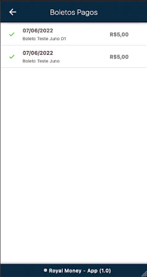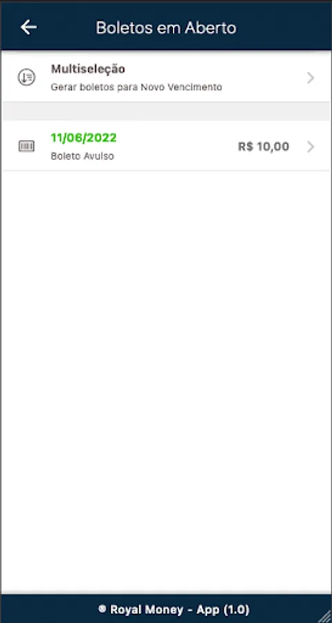 Royal Money Zero Default - Application for receipt of slips and generation of duplicates, communications, documents and history of paid slips.