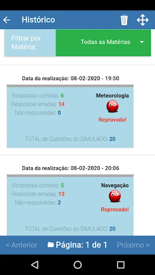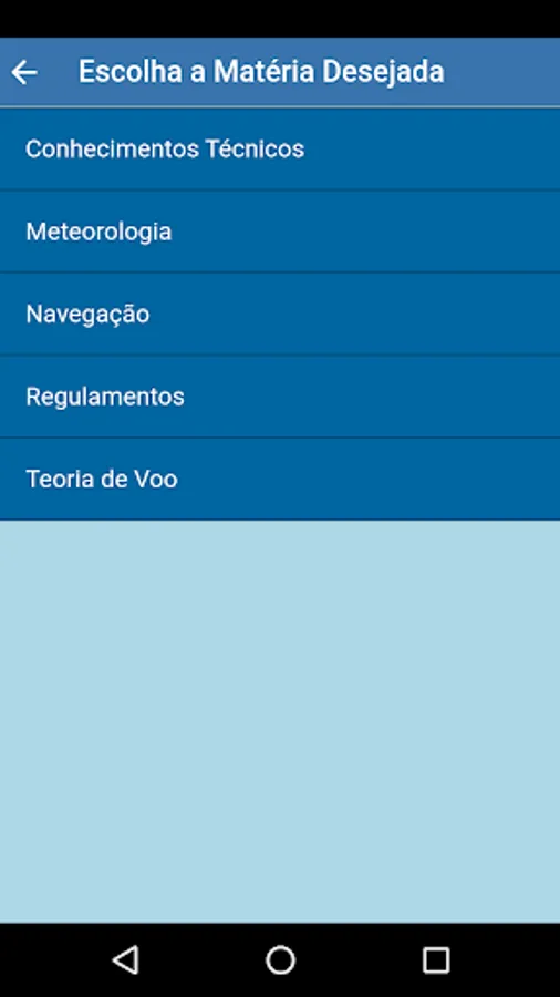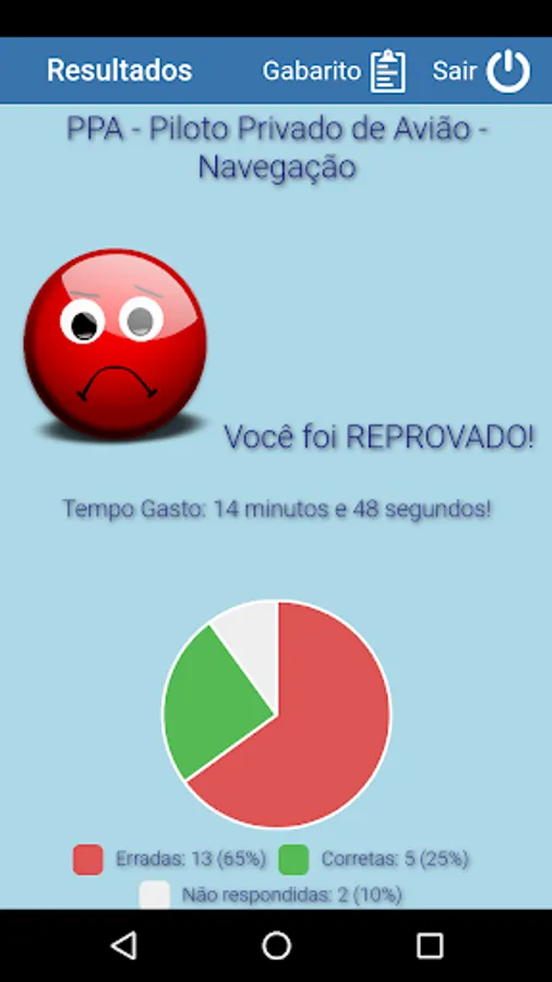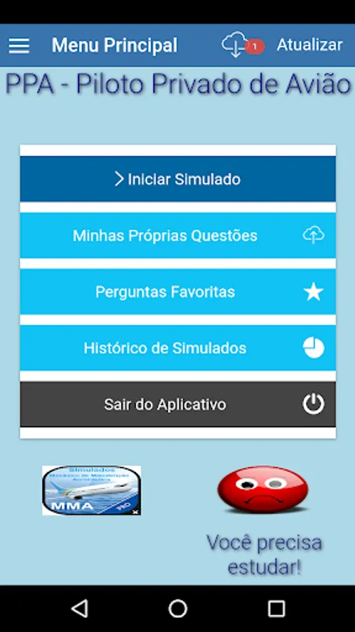 Once the Questions in the APP are updated (requires digital purchase), the App will contain the entire database of questions of the desired course, where the candidate must follow the same rules of the National Civil Aviation Agency Banking for approval, containing 20 questions. randomly drawn at each simulated and the candidate must hit at least 14 to pass.