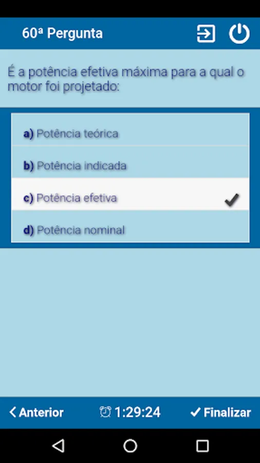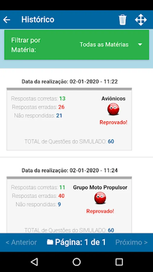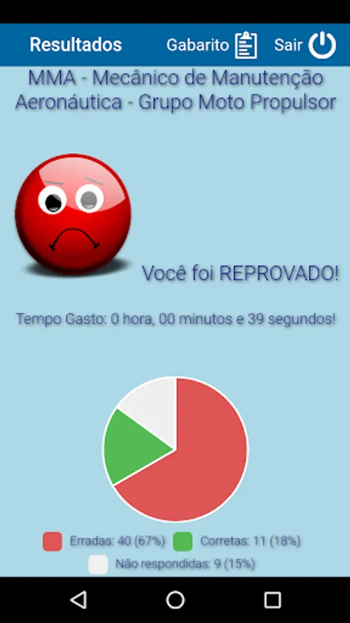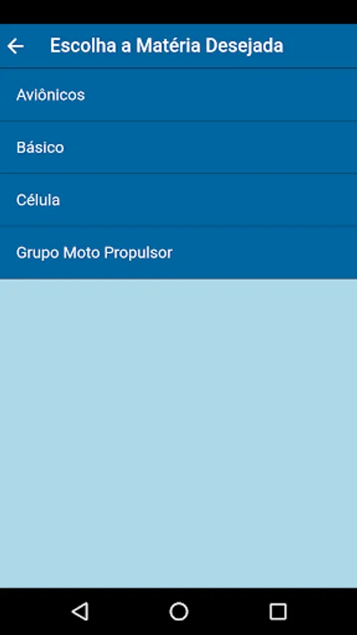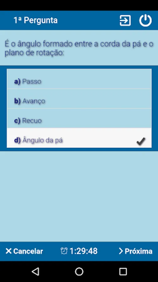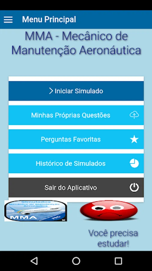 Once downloaded and installed, the APP contains the entire database of questions of the desired course, where the candidate must follow the same rules of the National Civil Aviation Agency Board for approval, containing 20 randomly drawn questions to each simulated and the candidate must hit at least 14 to pass.