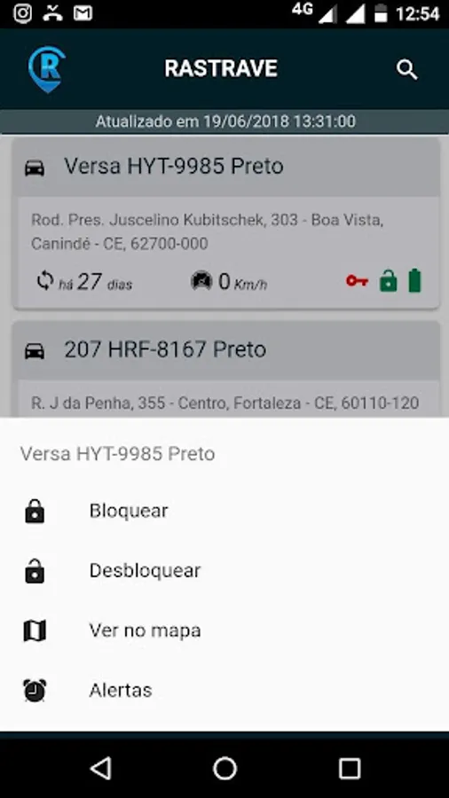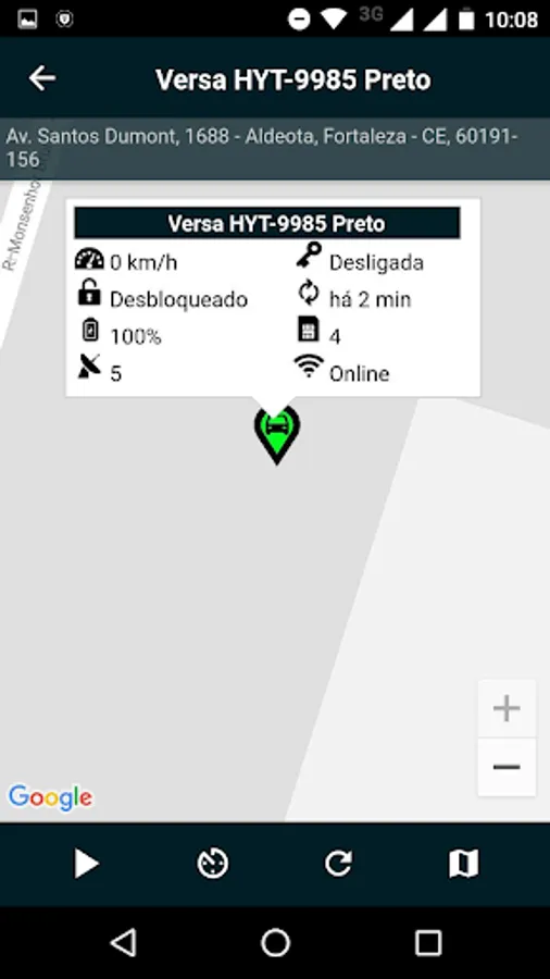 Detailed information (s) of vehicle (s) as speed, ignition on and off, date and time of last connection to the crawler.