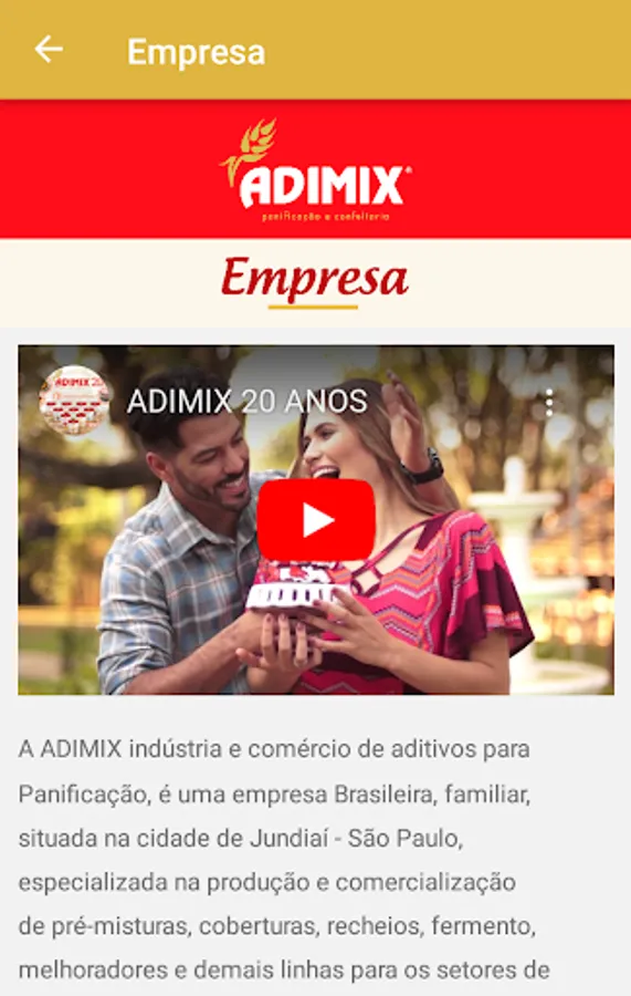 The APP presents information about Adimix so that customers, partners, bakeries and pastry shops have everything that is necessary to know and purchase the products provided by Adimix quickly and easily.