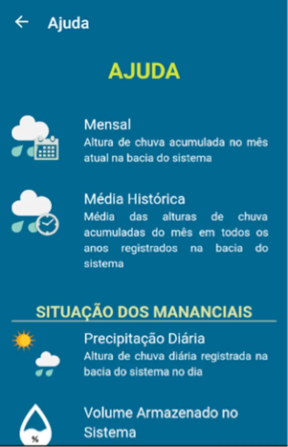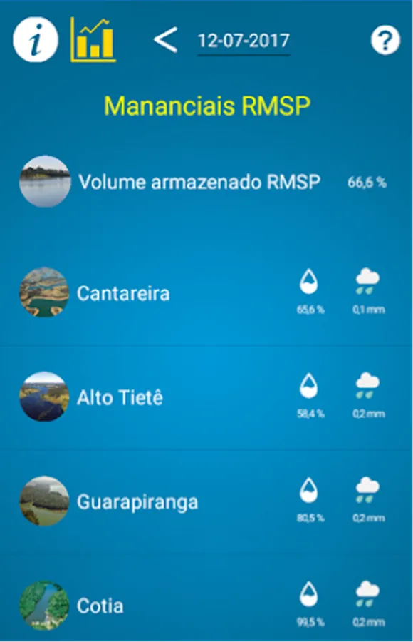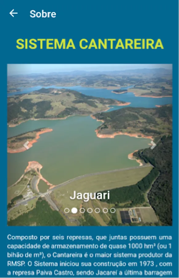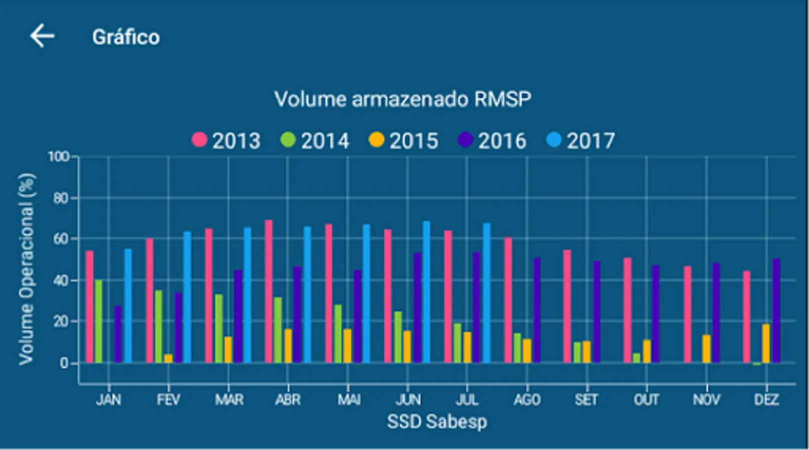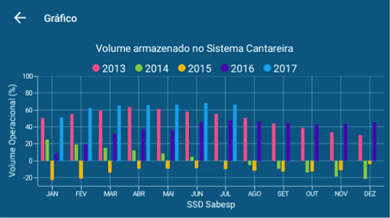 Through it, queries and searches can be performed on the characteristics, stored volumes and rain Systems: Cantareira, Alto Tiete, Guarapiranga, Cotia, Rio Grande and Rio Claro.
