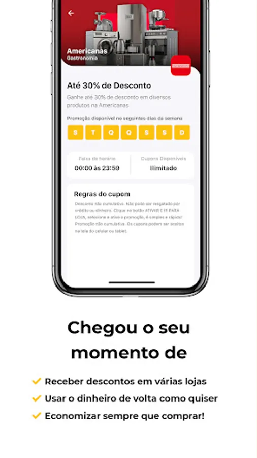 Download the app, register, search for the desired store, activate the promotion with cashback of your choice and make the purchase normally on the store's website or application. As soon as the brand informs us about the purchase, the cashback amount will be visible on your statement.