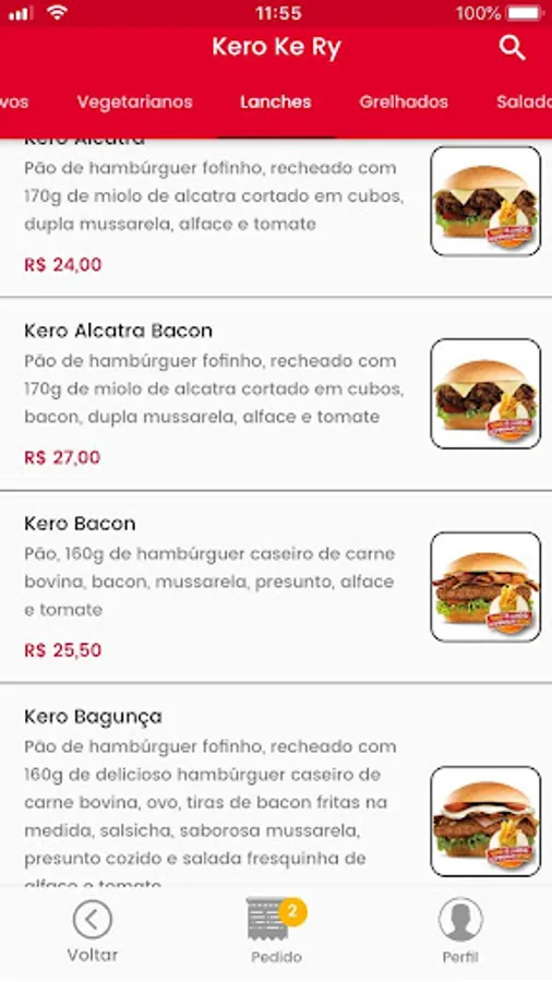 - illustrative menu, with product prices;