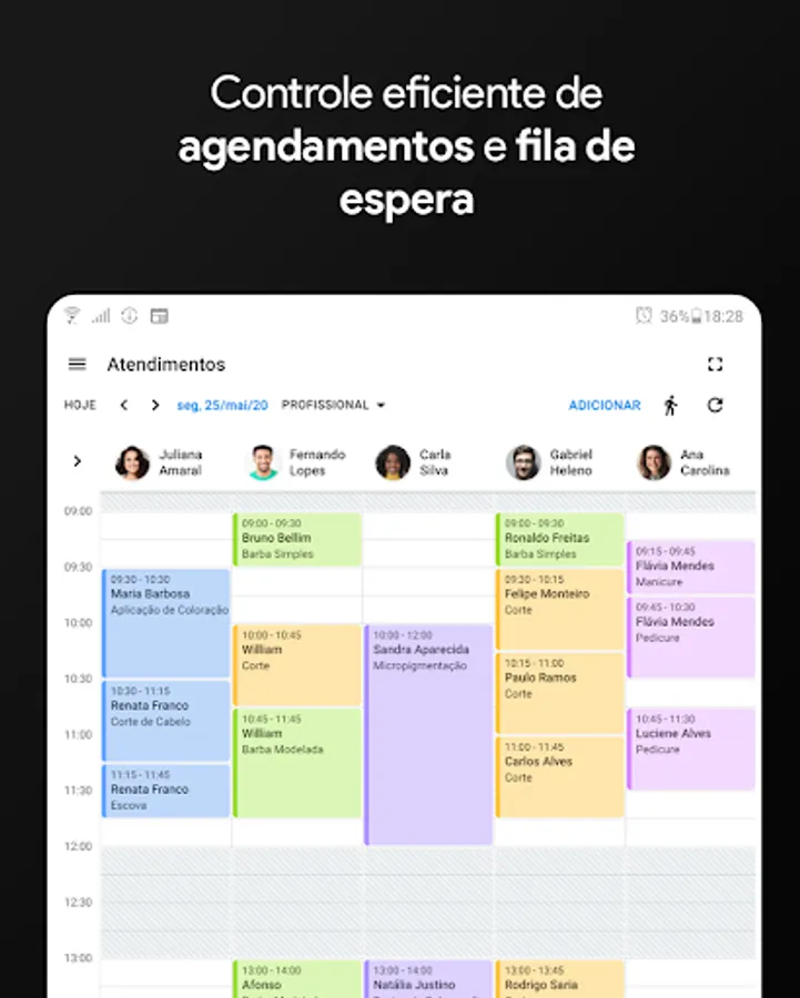 - Attendances: Control of schedules and queue. Several options for customizing the agenda.