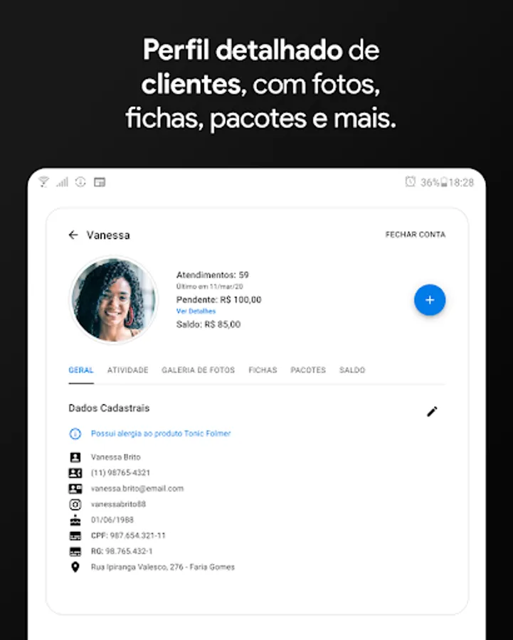 - Photo Gallery: Secure and organized storage of Full HD images in each client's photo gallery.