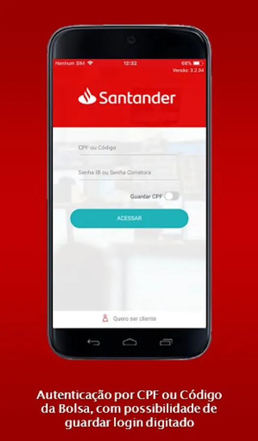 To access the Santander Corretora application, simply enter your bank tax number and password or, if you prefer, you can still use your Homebroker investor code and password.
