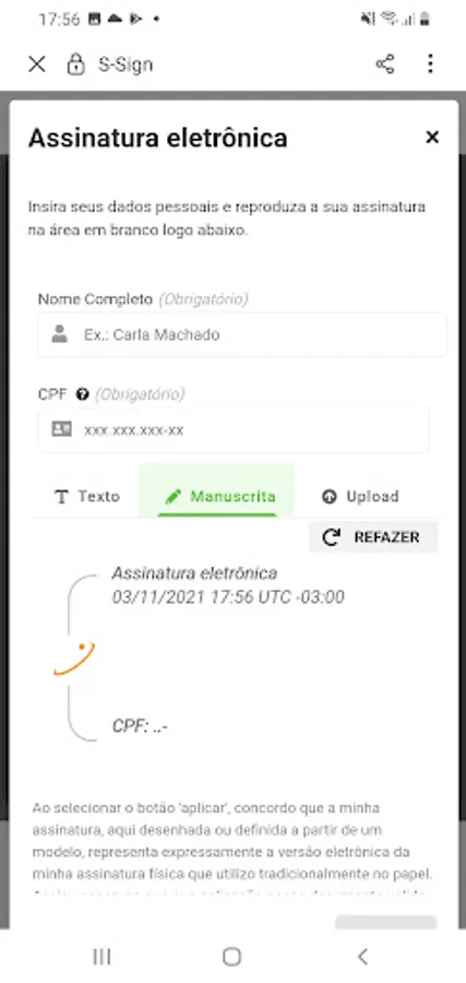 With the S-sign APP, it is possible to collect your signatory's signature instantly, fully electronic, and safely, without that mess of countless printed sheets, and without waste, because after all, after the signed sheets, they will be digitized.