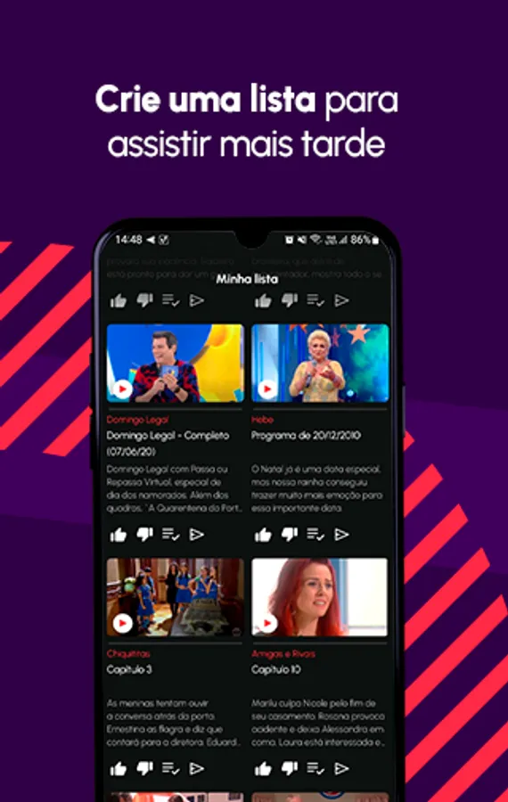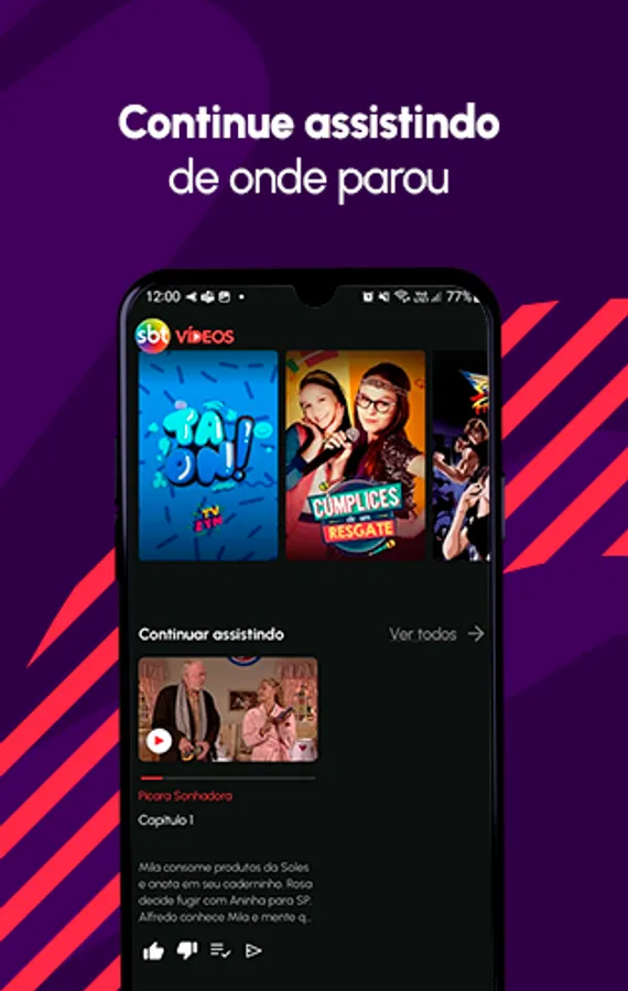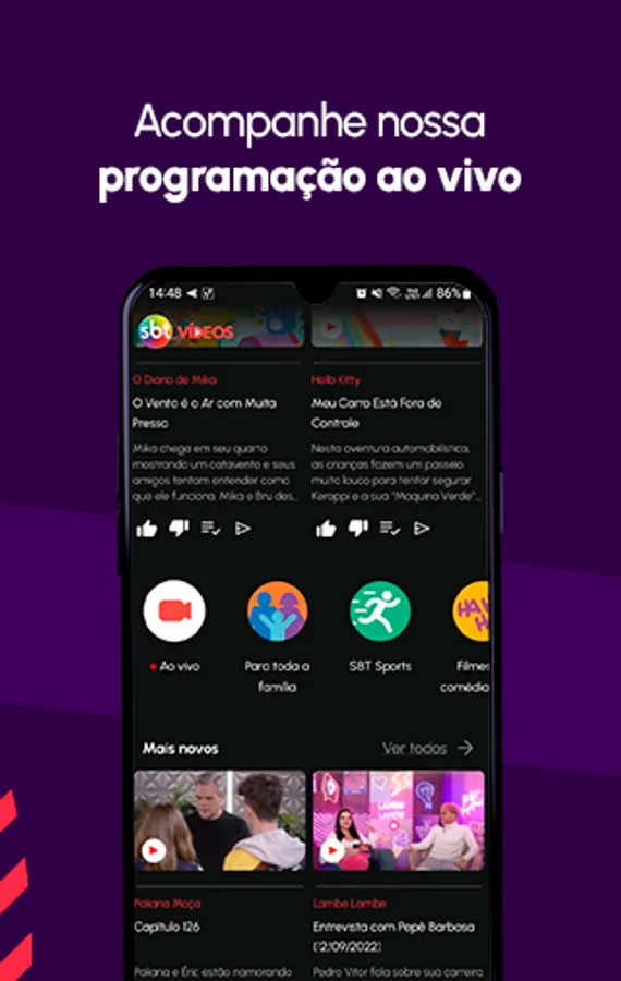 Available by themes, with easy access to several seasons and specific episodes of our novels, realities and series. And you can still tune in to SBT live!