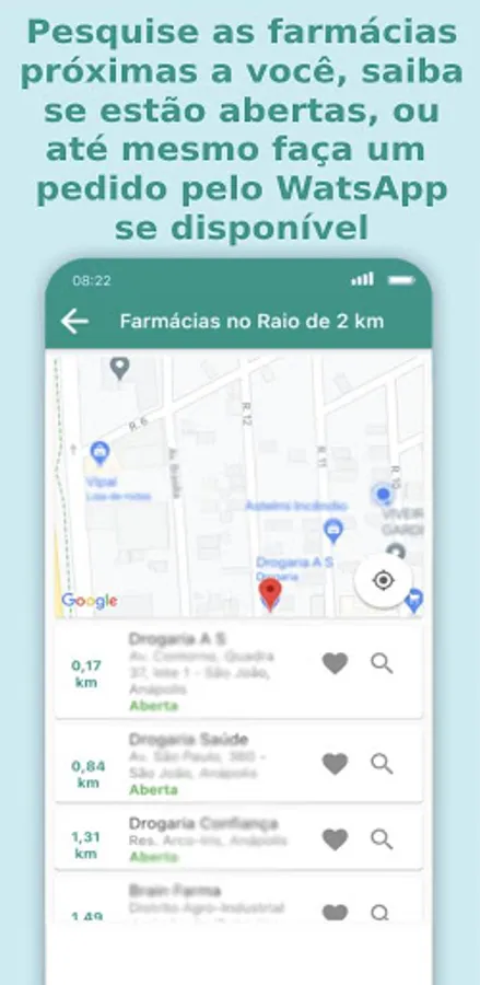 7 - A GPS that locates the nearest pharmacies, with the possibility of registering your favorite pharmacies;