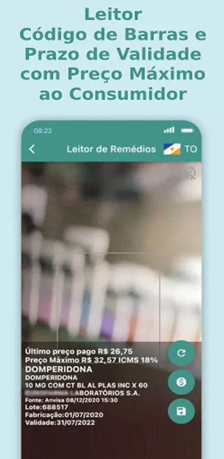 2 - Your camera becomes a batch and expiration analyzer to protect you from buying and consuming expired or near expiration medications;
