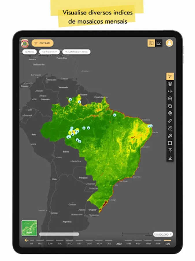 In the SCCON Platform app, it is possible to check the change detection alerts generated under the Brazil M.A.I.S. of alerts.