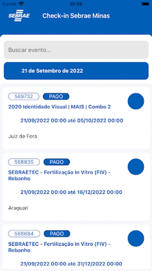 Application to perform automated presence confirmation in courses and events of Sebrae-MG.