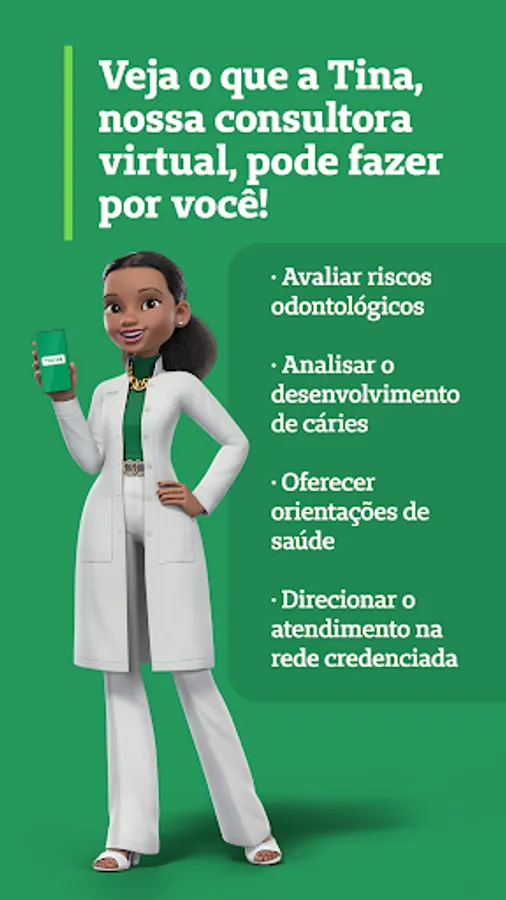 Furthermore, you can count on Tina, our virtual assistant who is ready to answer questions about your oral health, recommend dental solutions and direct you to the accredited network that provides the service.