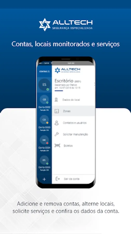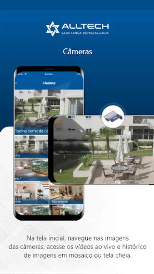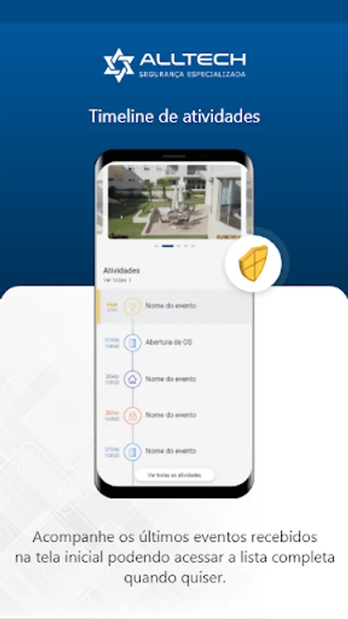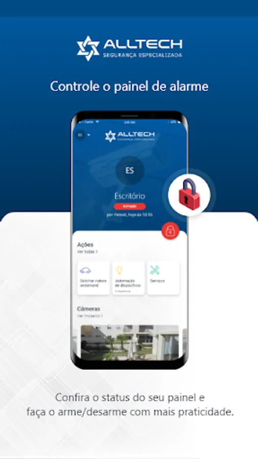 Alltech Mobile allows you to interact with your alarm panel directly on your smartphone. With it the monitored client can directly follow via mobile or tablet all the activities of your security system. Through the application you can know the status of the alarm panel, arm and disarm it, view live cameras, check events and open work orders and make phone calls to contacts registered in your profile. It's the security you need in the palm of your hand.