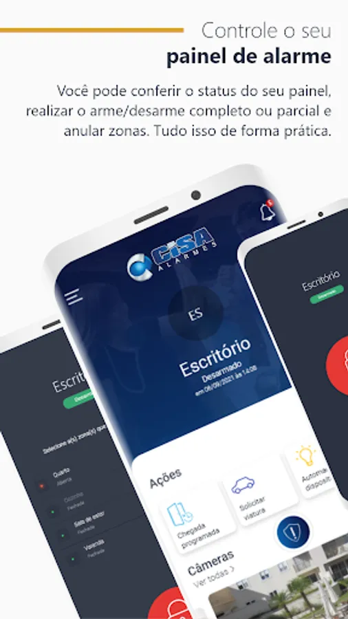 Cisa Alarmes is a mobile application where the monitored customer can directly monitor all the activities of their security system via cell phone or tablet. Through the application, it is possible to know the status of the alarm panel, arm and disarm it, view live cameras, check events and open work orders, in addition to making phone calls to contacts registered in your profile. It's the security you need in the palm of your hand.
