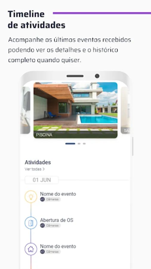 SEGSAM is a mobile application where the monitored customer can follow directly via cell phone or tablet all the activities of their security system. Through the application, it is possible to know the status of the alarm panel, arm and disarm it, view the cameras live, check events and open work orders, in addition to making phone calls to contacts registered in your profile. It's the security you need in the palm of your hand.