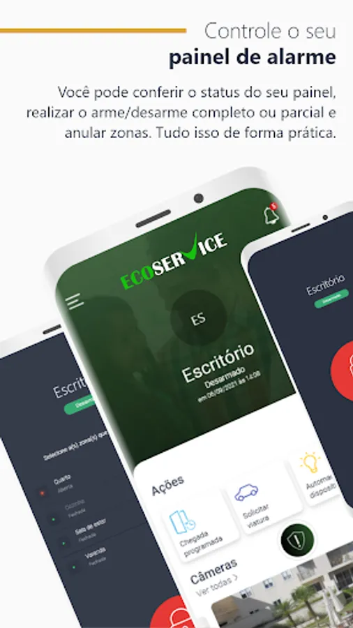 ECOSERVICE SECURANÇA MOBILE is a mobile application where the monitored customer can directly monitor all activities of their security system via cell phone or tablet. Through the application, it is possible to know the status of the alarm panel, arm and disarm it, view the cameras live, check events and open work orders, in addition to making phone calls to contacts registered in your profile. It's the security you need in the palm of your hand.