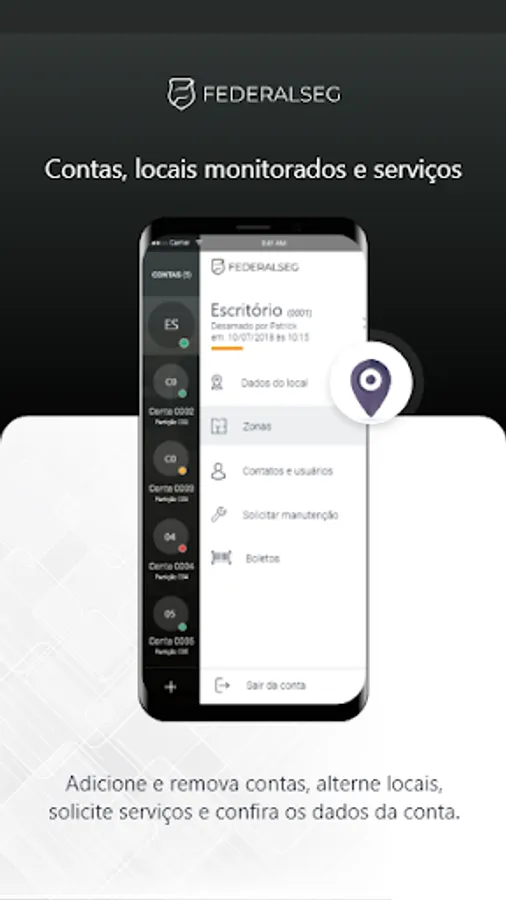 The FederalSeg is a mobile application where the customer can follow directly monitored via phone or tablet all the activities of your security system. Through the application you can know the status of the alarm panel, arm it and disarm it, viewing live cameras, check events and open work orders and make phone calls to contacts registered in your profile.