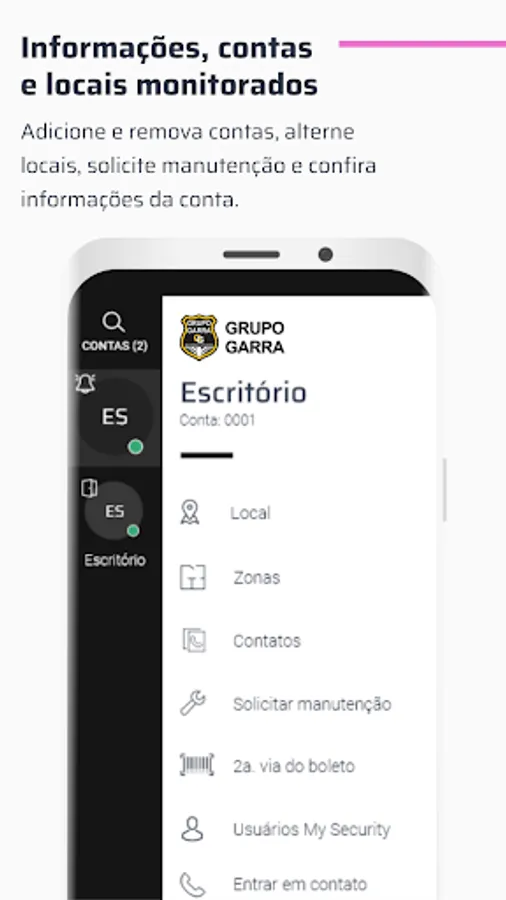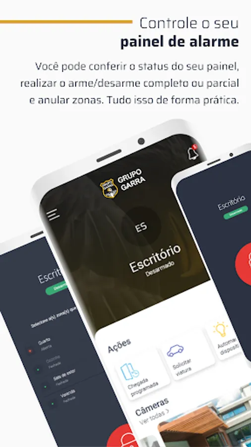 Grupo Garra is a mobile application where the monitored customer can follow directly via cell phone or tablet all the activities of their security system. Through the application, it is possible to know the status of the alarm panel, arm and disarm it, view the cameras live, check events and open work orders, in addition to making phone calls to contacts registered in your profile. It's the security you need in the palm of your hand.