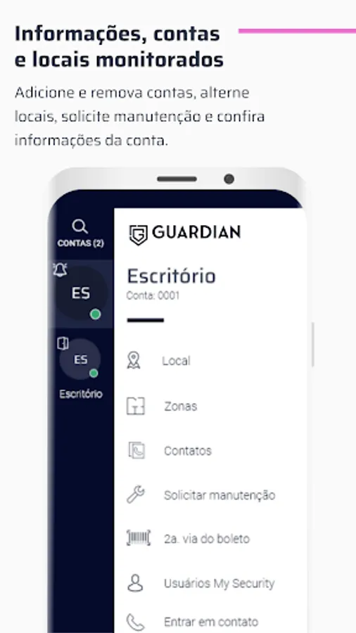 Guardian Seg is a mobile application where the monitored customer can follow directly via cell phone or tablet all the activities of their security system. Through the application, it is possible to know the status of the alarm panel, arm and disarm it, view the cameras live, check events and open service orders, in addition to making phone calls to contacts registered in your profile. It's the security you need in the palm of your hand.
