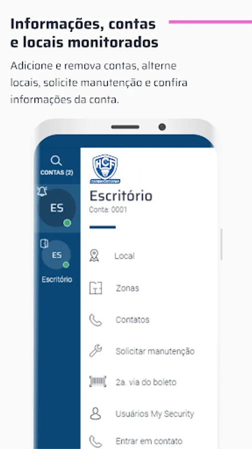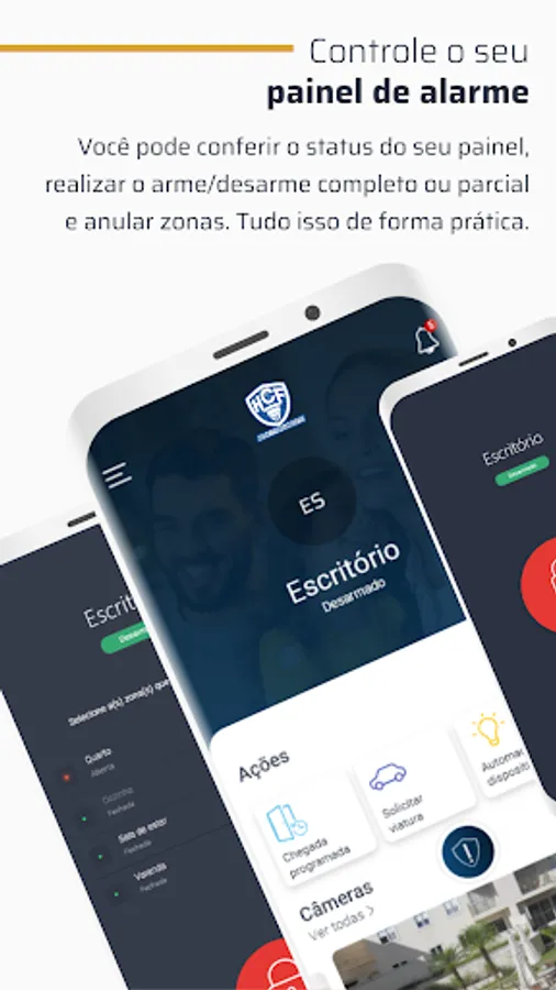 HCF MONITORING is a mobile application where the monitored customer can directly monitor all activities of their security system via cell phone or tablet. Through the application, it is possible to know the status of the alarm panel, arm and disarm it, view the cameras live, check events and open work orders, in addition to making phone calls to contacts registered in your profile. It's the security you need in the palm of your hand.