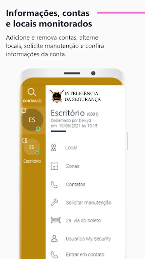 ISEG SECURITY is a mobile application where the monitored customer can directly monitor all the activities of their security system via cell phone or tablet. Through the application, it is possible to know the status of the alarm panel, arm and disarm it, view live cameras, check events and open work orders, in addition to making phone calls to contacts registered in your profile. It's the security you need in the palm of your hand.