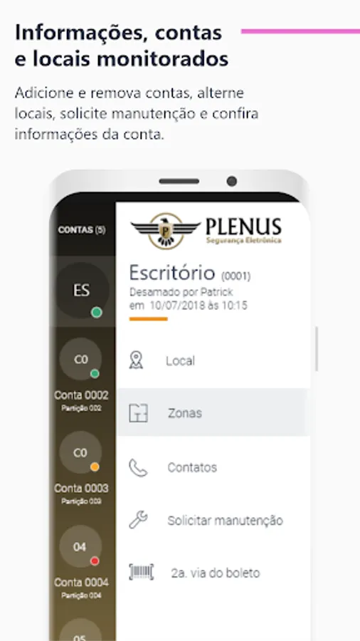 The Plenus Segurança app is another solution offered to our customers and aims to optimize the management of monitoring alarms, cameras and home automation. In addition to all these utilities, the app offers remote arming and disarming functionality and the convenience of receiving notifications in real time on your mobile device, filtering all events associated with your account from anywhere and at any time.