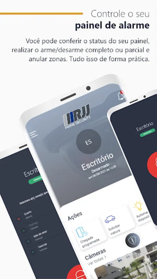 RJJ Security is a mobile application where the monitored customer can directly monitor all the activities of their security system via cell phone or tablet. Through the application, it is possible to know the status of the alarm panel, arm and disarm it, view live cameras, check events and open work orders, in addition to making phone calls to contacts registered in your profile. Security and technology you need in a practical and easy way in the palm of your hand.