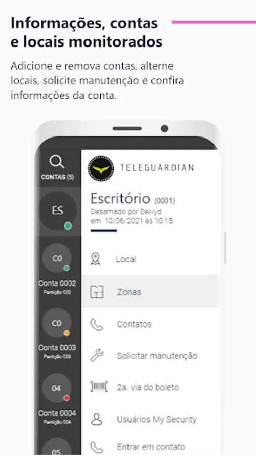 Teleguardian Alarme & CCTV is an application where you can directly monitor all the activities of your security system via cell phone. Through the application, it is possible to know the status of the alarm panel, arm and disarm it, perform device activations, view live cameras, check events and open work orders. It's the security you need in the palm of your hand.