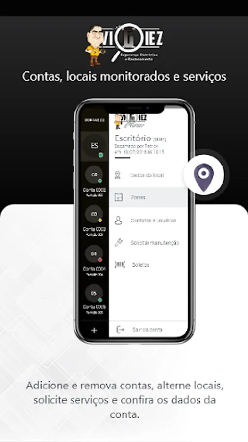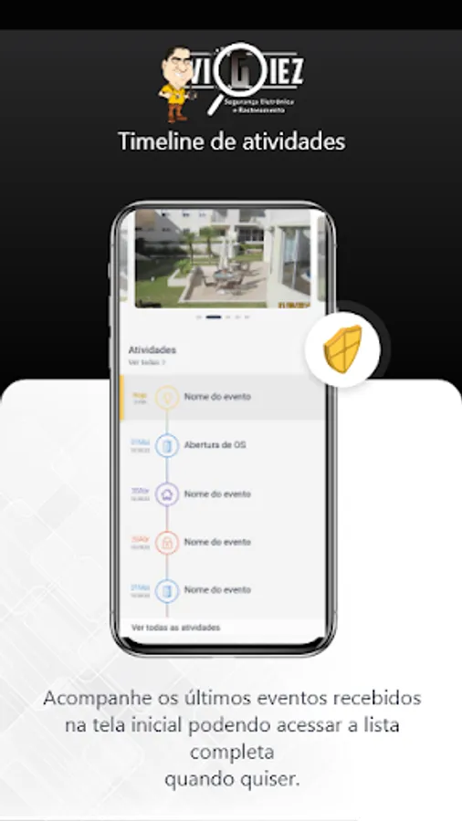 Vigiez is a mobile application where the monitored client can monitor all the activities of your security system directly via mobile phone or tablet. Through the application it is possible to know the status of the alarm panel, arm and disarm it, view the live cameras, check open service events and work orders, and make phone calls to registered contacts in your profile. It is the security you need in the palm of your hand.