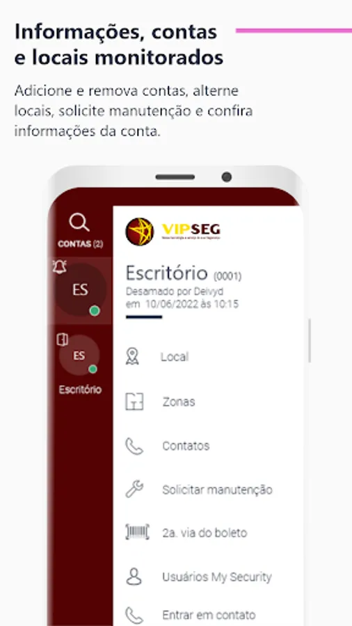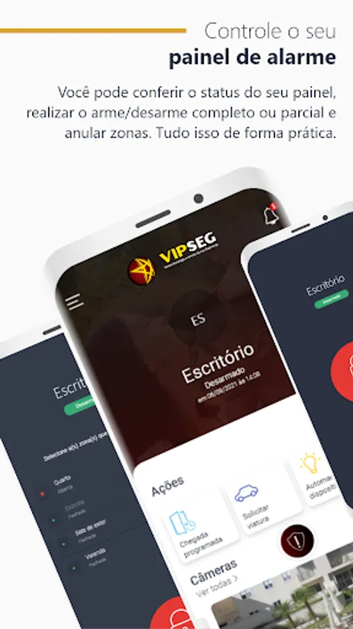 The Vipseg24horas App is a mobile application where the monitored customer can directly follow all the activities of their security system via cell phone or tablet. Through the application, it is possible to know the status of the alarm panel, arm and disarm it, view the cameras live, check events and open work orders, in addition to making phone calls to contacts registered in your profile. It's the security you need in the palm of your hand.