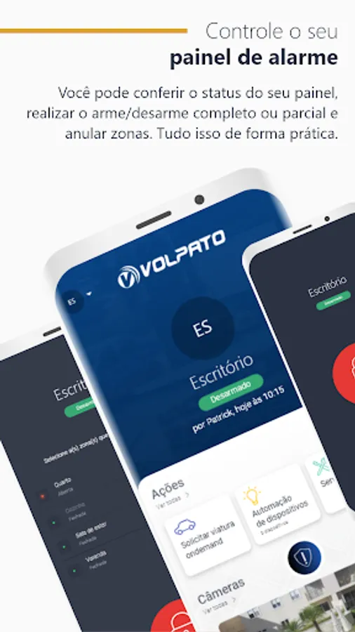 The Security Volpato is a mobile application where the customer can track monitored directly via phone or tablet all the activities of your security system. Through the application you can know the status of the alarm panel, arm it and disarm it, view the live cameras, check events and open work orders and make phone calls to contacts registered in your profile. It is the security you need in the palm of your mão.o.